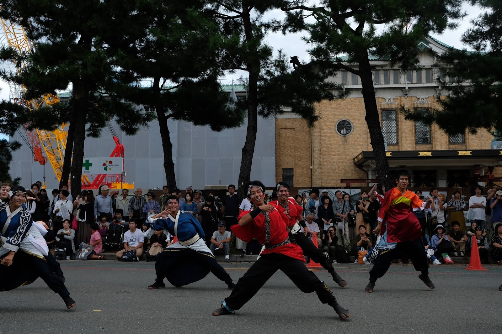 從這附近要到南禪寺最近的巴士站有點遠,秉持著飯後散步的精神我們便在平安神宮附近下車,結果在經過超浮誇紅色大鳥居時發現有神輿活動大家就被吸進去了!